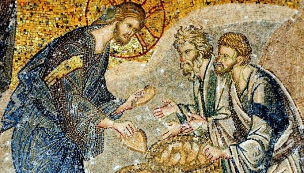 Jesus tomou os pães, e, tendo dado graças, distribuiu-os aos que estavam